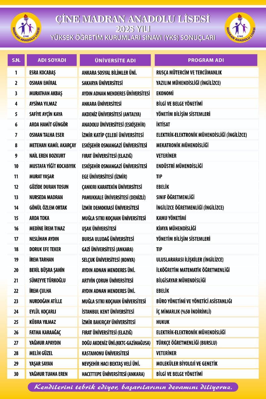 - ÇİNE MADRAN ANADOLU LİSESİ OLARAK NİTELİKLİ OKUL KAPSAMINA ALINDIK